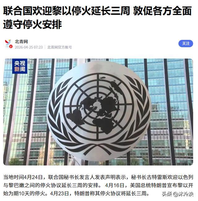 4月24日,联合国秘书长古特雷斯发表声明,一边欢迎停火延长,一边敦促各方履约,还要黎方统一管控武器、以方撤出边境——说得冠冕堂皇,可有用吗,以军根本当耳旁风,该开火照样开火,该杀人照样杀人。