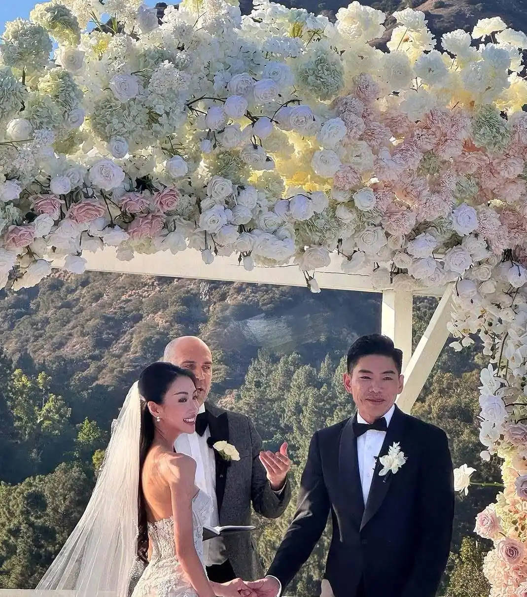 婚礼排场是真不含糊。美国那场选在洛杉矶Castaway Burbank餐厅,吉隆坡这场直接包下当地顶流酒店,光鲜花布置就铺满整个宴会厅。最绝的是出场仪式:Eunice穿拖尾白婚纱独自走向新郎,红底打光衬得她像从画里走出来,孔令奇站在台上手都在抖。后来敬酒时俩人换了短款礼服,突然在舞台上跳起热舞,宾客们举着手机拍个不停,王力宏还专门录了视频隔空送祝福。